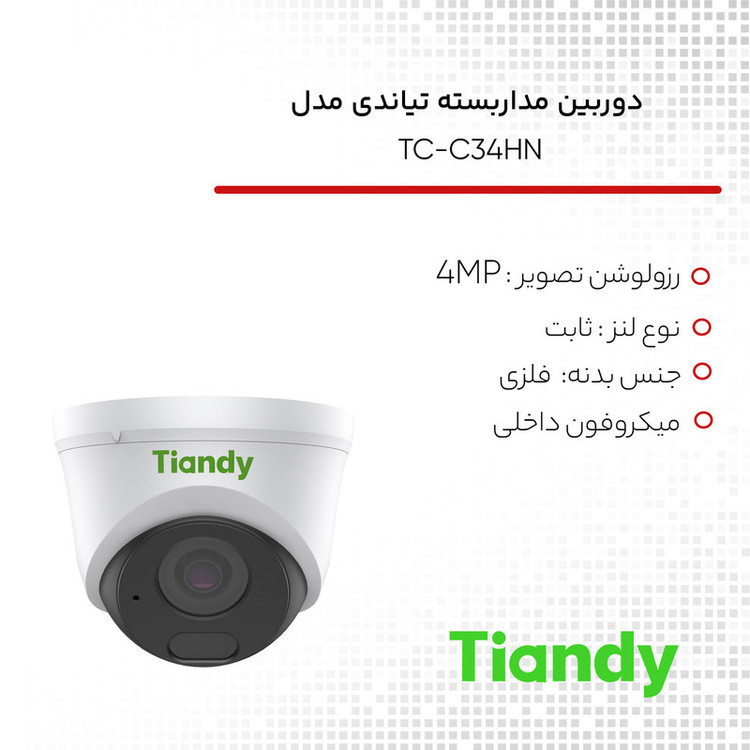 تورت 4مگاپیکسل دید درشب 30 متری 4MP Fixed IR Turret Camera Metal+Plastic Housing Smart IR, IR Range: 30m Built-In Mic Support tripwire and perimeter POE, IP66